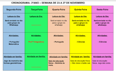 LINK DO CRONOGRAMA: CRONOGRAMA DA SEMANA DE 02 A 06 DE NOVEMBRO