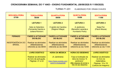 LINK DO CRONOGRAMA: CRONOGRAMA DA SEMANA DE 07 A 11 DE SETEMBRO